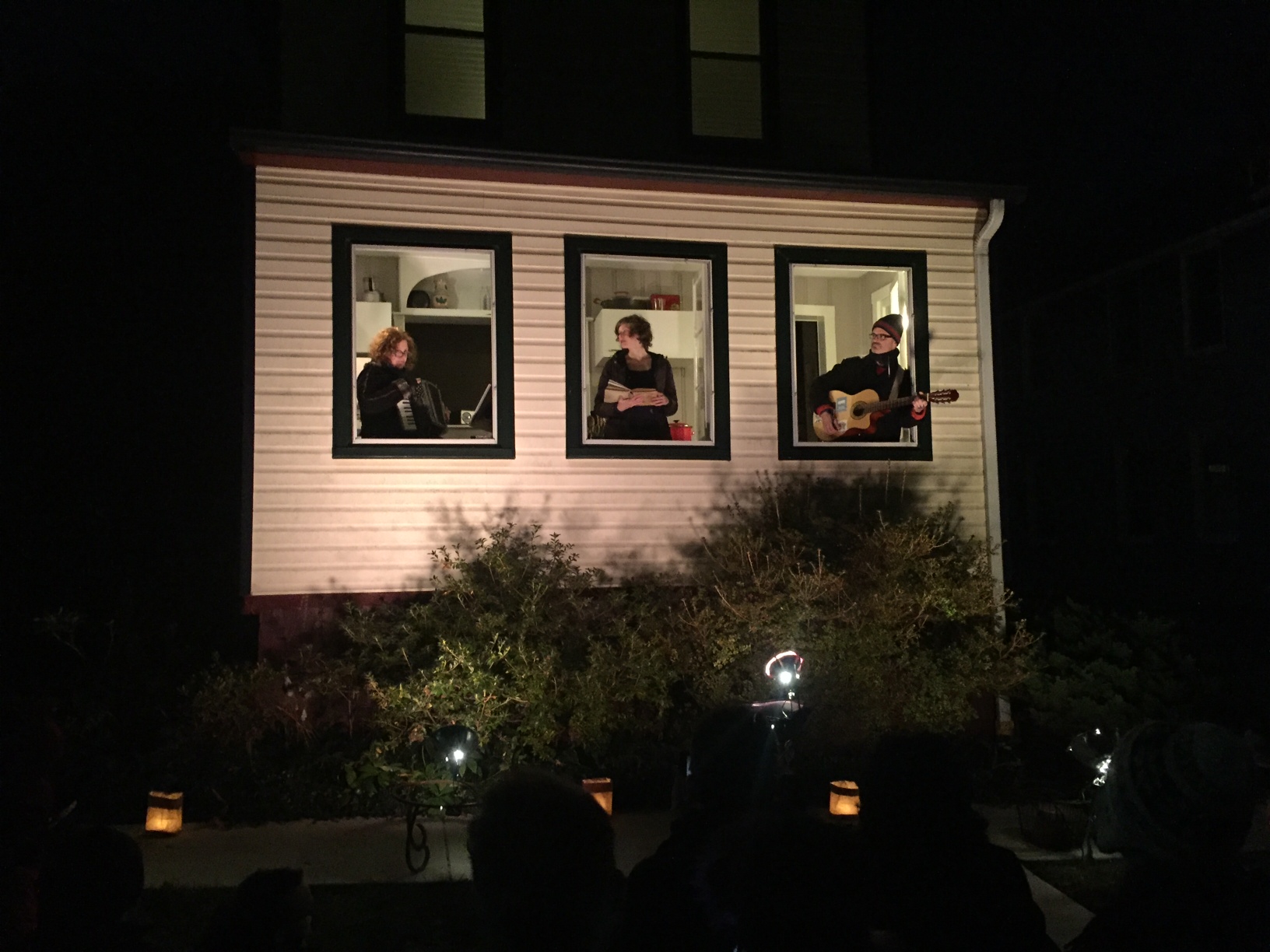Continuing our exploration of home and neighborhood as an essential place to make and share performances, neighbors from near and far gather at the house on Sabina Ave for an evening of songs and stories, warm food and warm drinks.